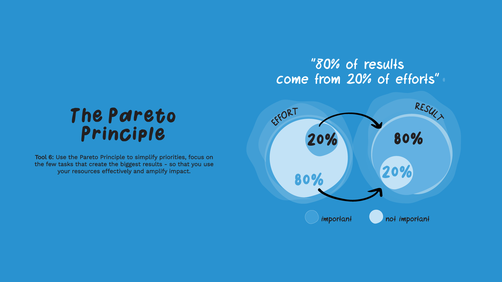 - Around 20% of efforts drive 80% of outcomes