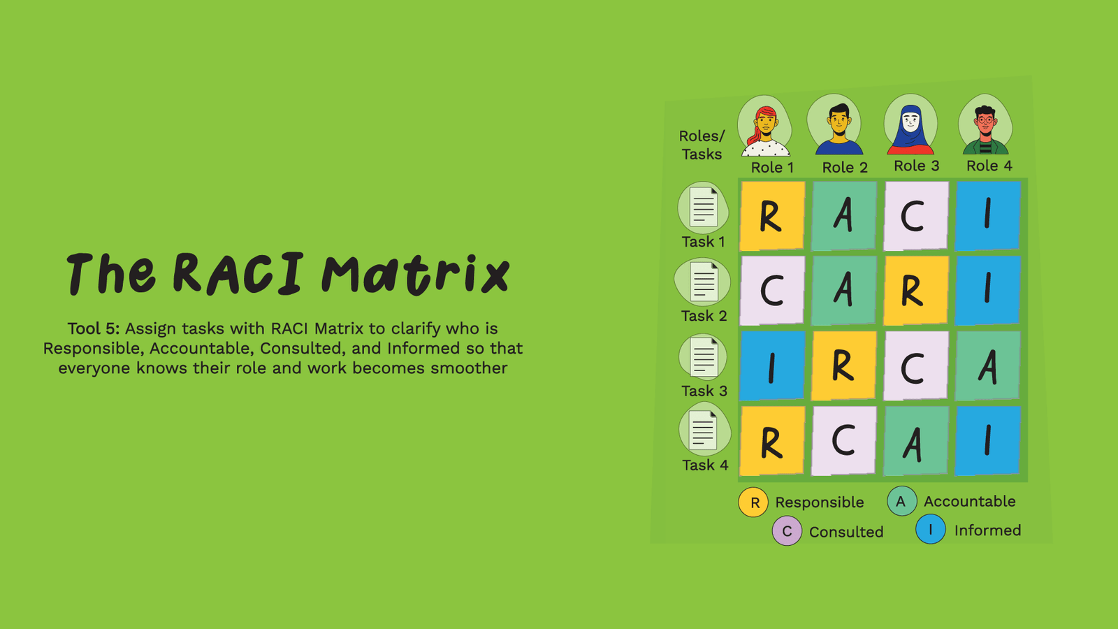 RACI is a simple framework that clarifies who does what for a task or decision.